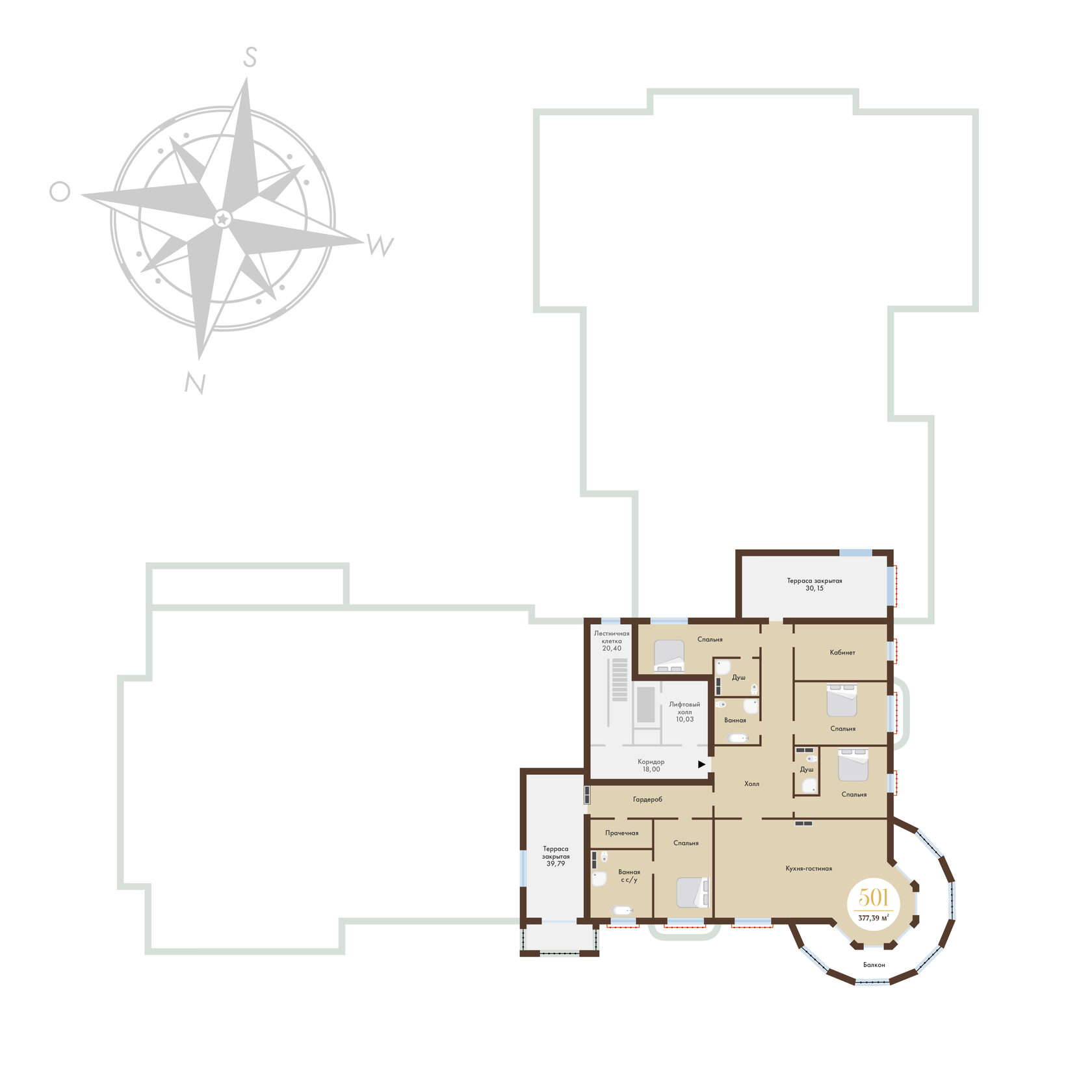 Особым подходом к организации пространства выделяется VIP резиденция последнего этажа. Видовой 6 комнатный пентхаус площадью 377,39 кв.м. с индивидуальным доступом на этаж. Собственный выход на смотровую площадку и открывающийся вид на всю Екатериновку с высоты 20 метров, вот в чем уникальность и неповторимость данной резиденции.